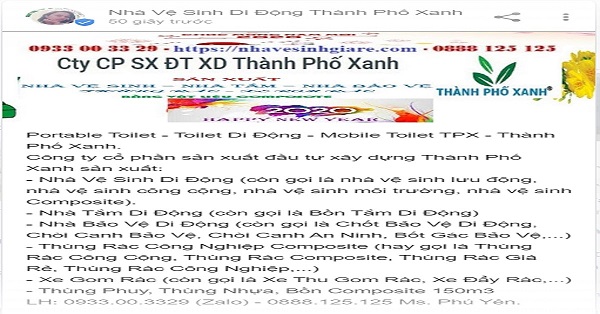 Hình 7: Cty CP SX ĐT XD Thành Phố Xanh sản xuất mobile toilet - nhà tắm - chốt bảo vệ - thùng rác - xe gom rác - bồn Composite