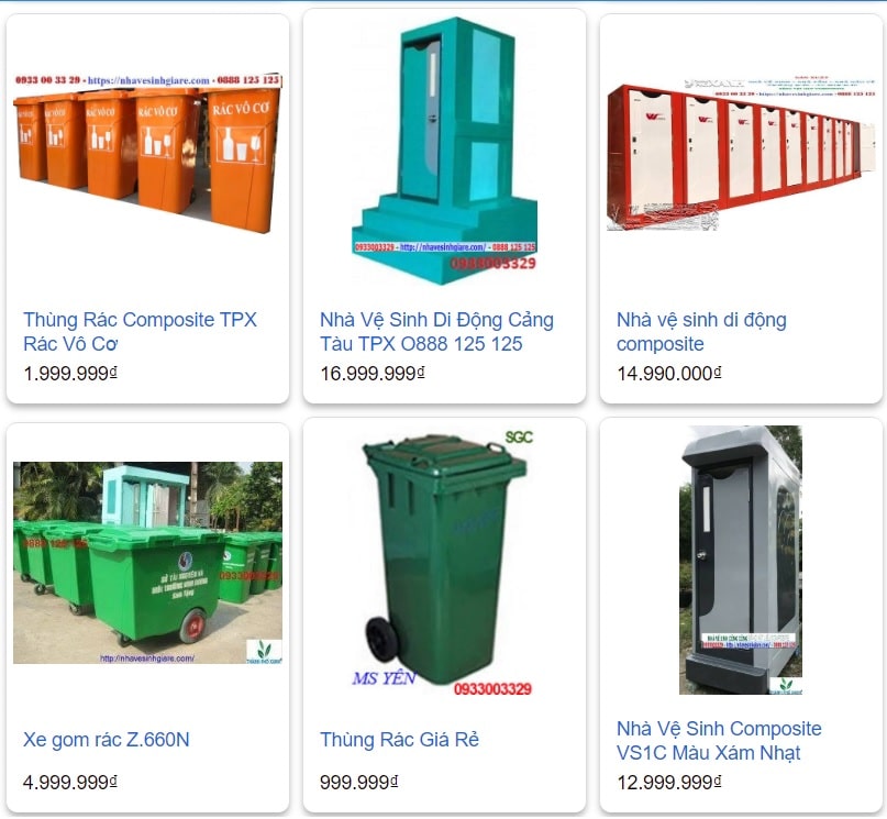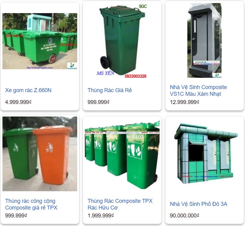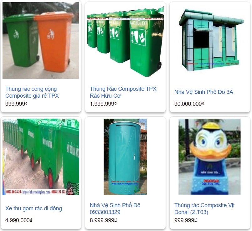 "NHÀ VỆ SINH - NHÀ TẮM - NHÀ BẢO VỆ" & "THÙNG RÁC - XE GOM RÁC"