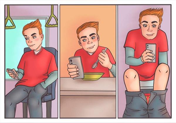 Sử dụng điện thoại quá nhiều, ngay cả khi đi vệ sinh, chúng ta dễ dàng trở thành những "con nghiện"