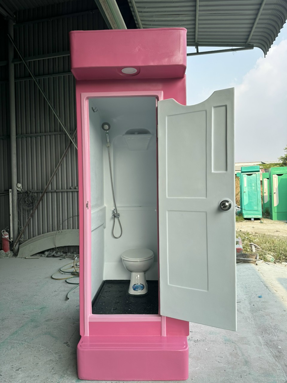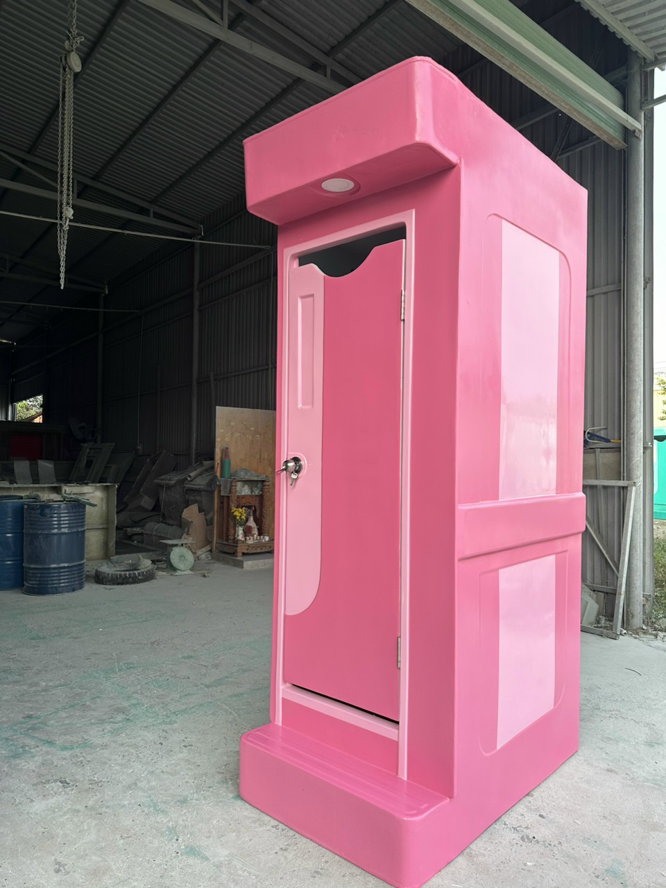 Nhà vệ sinh công trình là nhà vệ sinh chuyên phục vụ công trình xây dựng với ưu điểm là gọn nhẹ, tiện nghi đầy đủ, có bồn chứa nước và hầm phân phân hủy 3 ngăn xử lý vi sinh, đặc biệt khác hẳn với các nhà vệ sinh lắp ghép từng miếng thông thường. Nhà vệ sinh Công trình được đúc thành một khối vững chắc, bên trong không có khung sắt và ván ép, 100% vật liệu bằng Composite rất bền, dễ bảo trì, dễ dàng di chuyển theo các công trình.