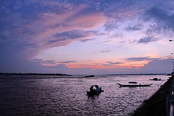 Bình minh ở bờ sông tại thị xã Tân Châu