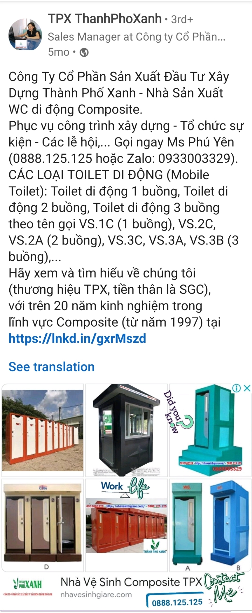 TPX - Nhà Sản Xuất Nhà Vệ Sinh Di Động Composite từ năm 1997 (trên 20 năm kinh nghiệm)